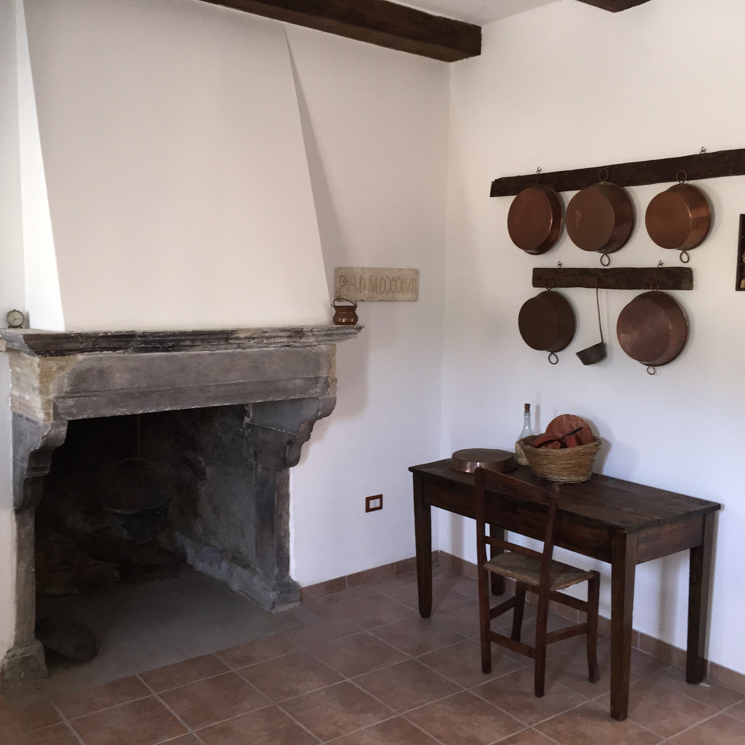A testimoniare la vita familiare contadina, la cucina con il tavolo, le casseruole in rame, la tinozza per l’acqua, il mortaio, utensili da pranzo e il focolare con il cippo che tiene fermo il paiolo. Nella stessa sala sono esposti frammenti di terracotta e ceramica rinvenuti nel terreno circostante.