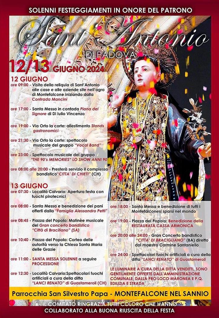 12 giugno 2024 Festività in onore di Sant’Antonio di Padova 14 venerdì Giu 2024 Posted by markodi94 in EVENTI ≈ Lascia un commento